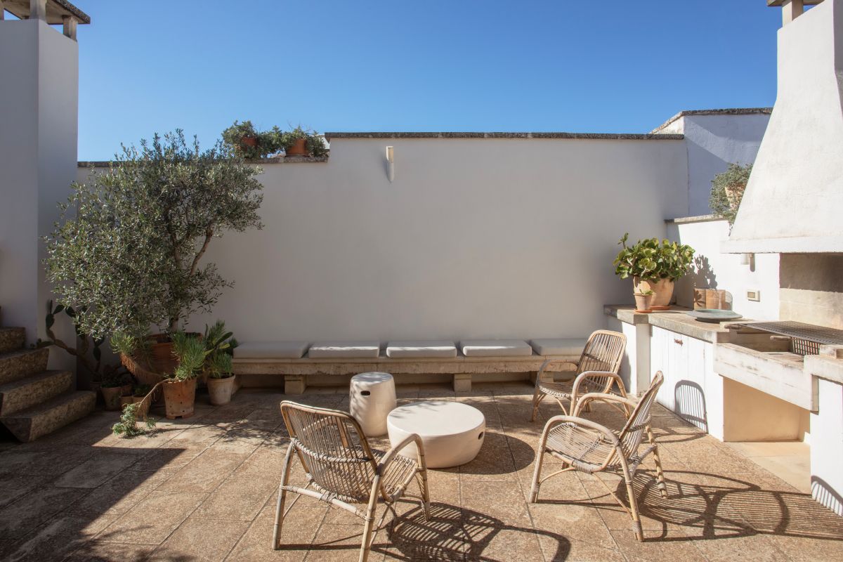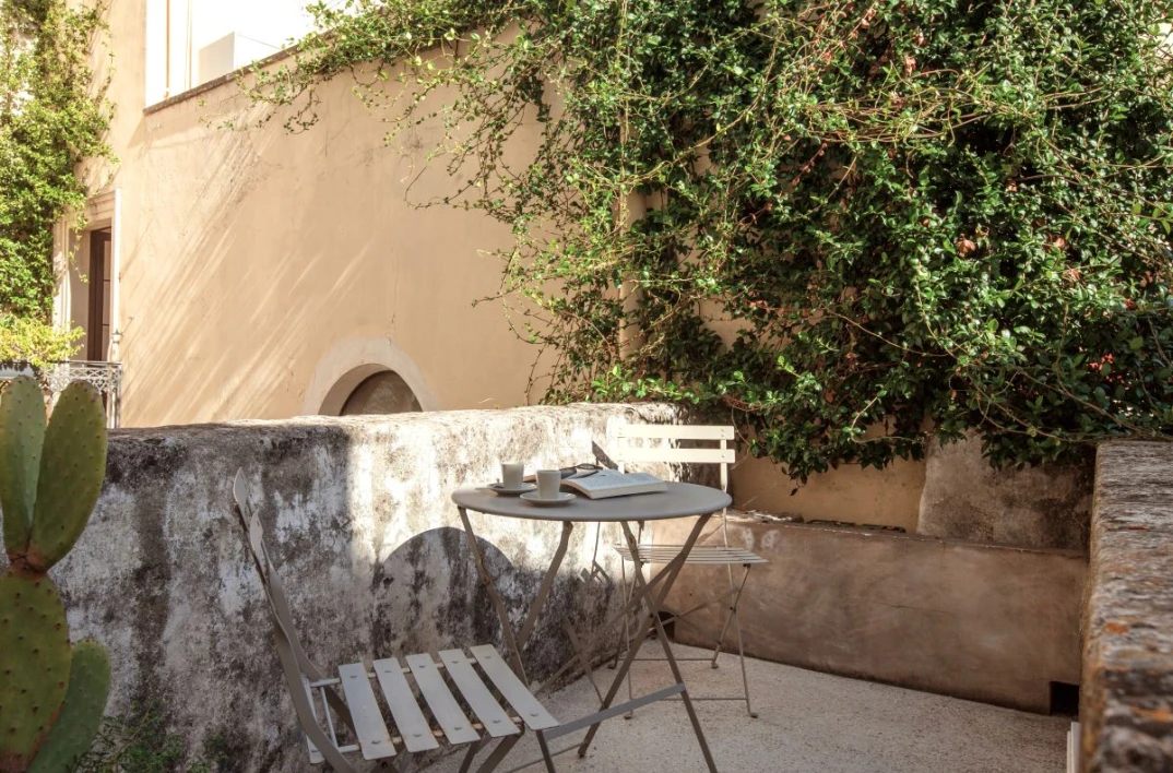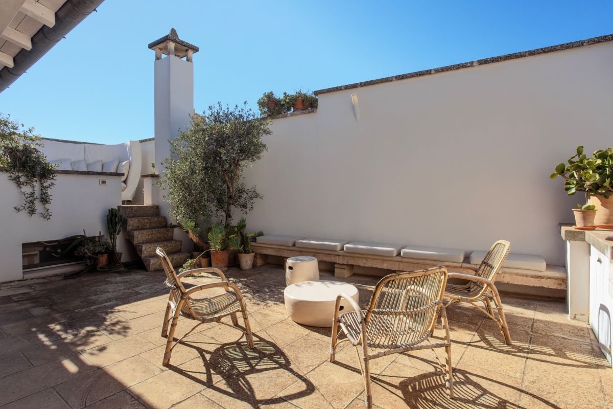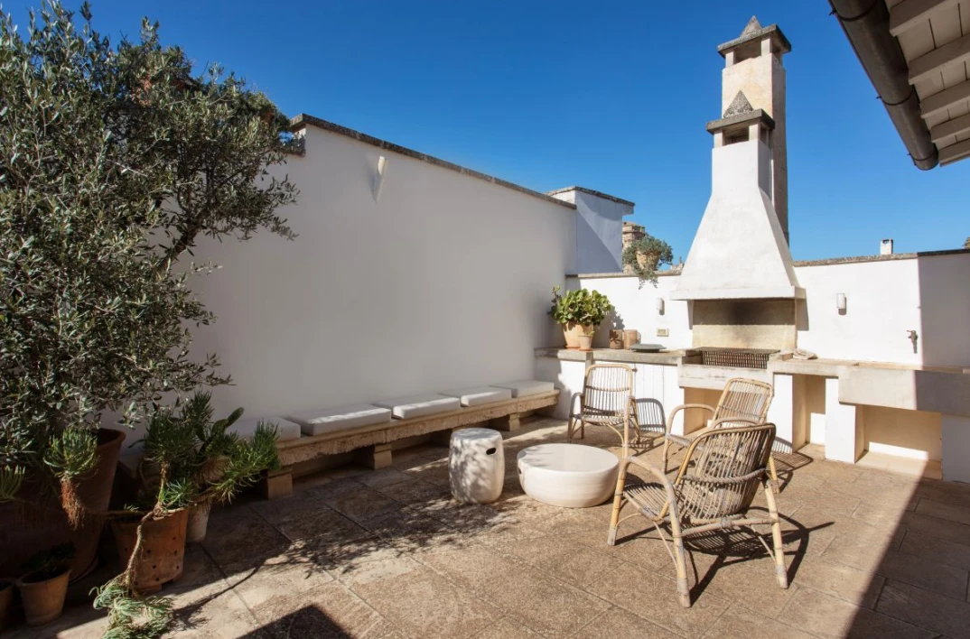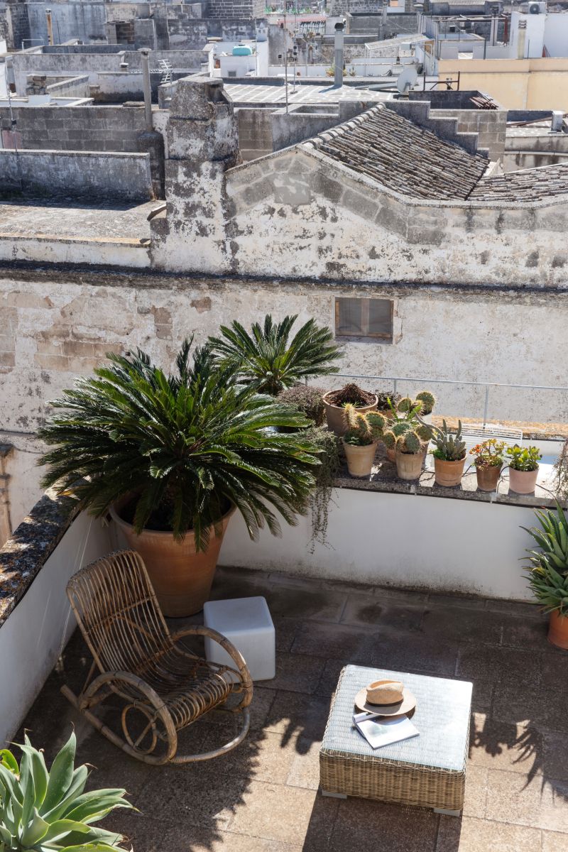 Angel Apartment is a stunning boutique retreat in a restored 17th-century palazzo in Nardó, featuring a spectacular multi-level roof terrace with panoramic town views, an outdoor shower, and a second kitchen.