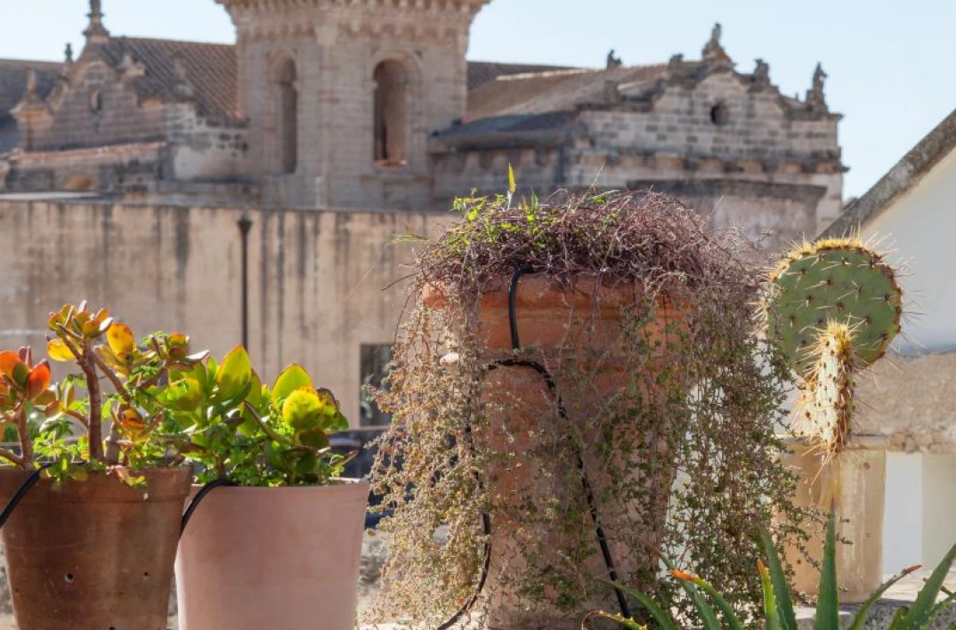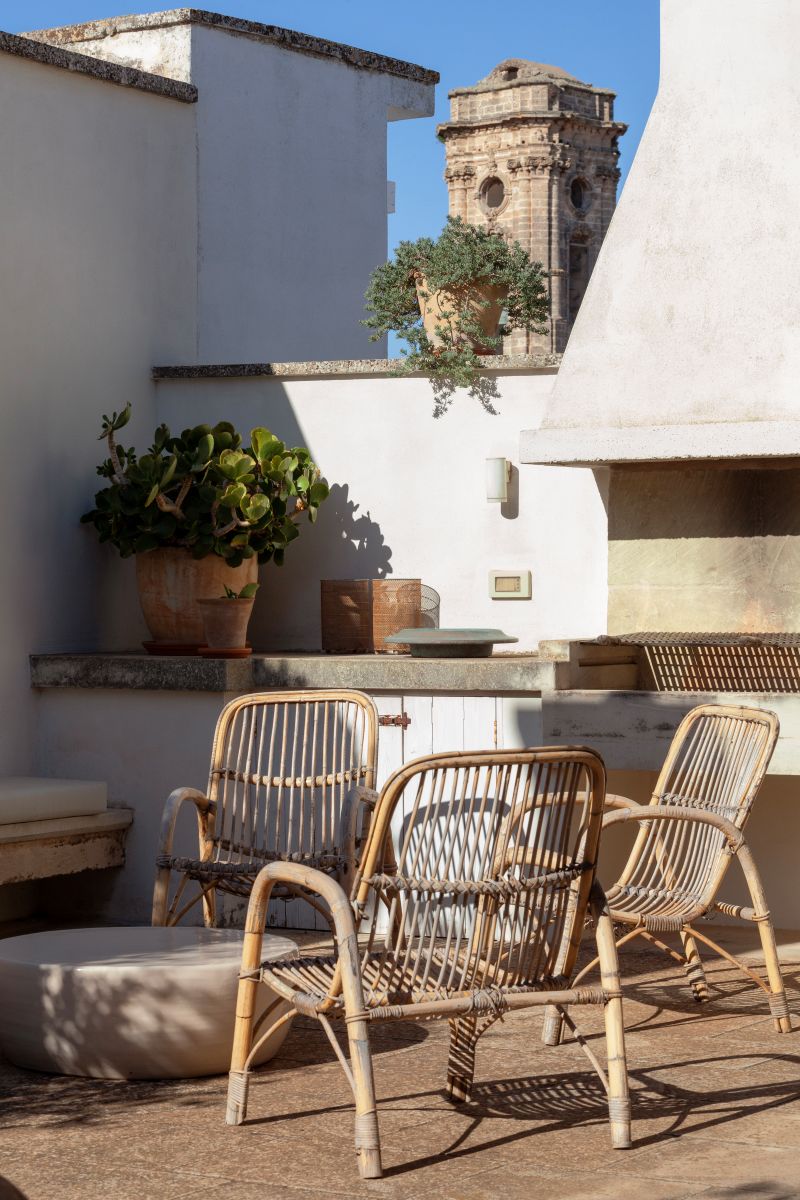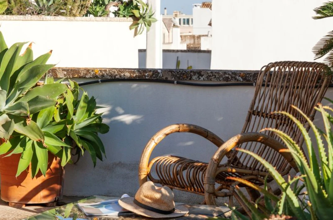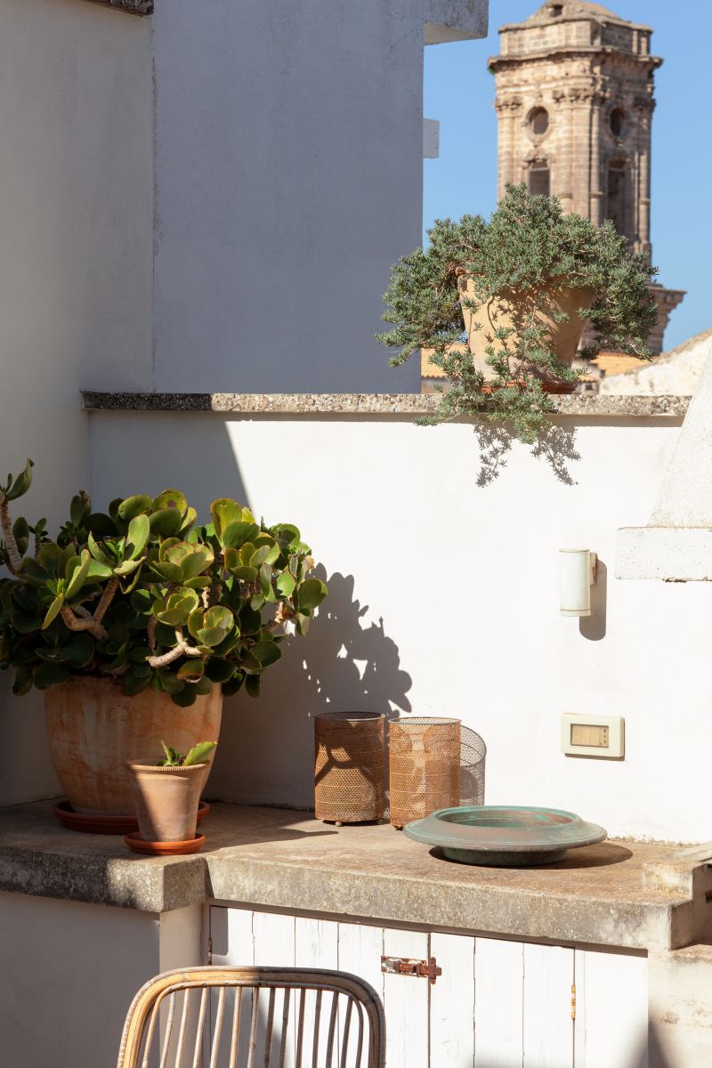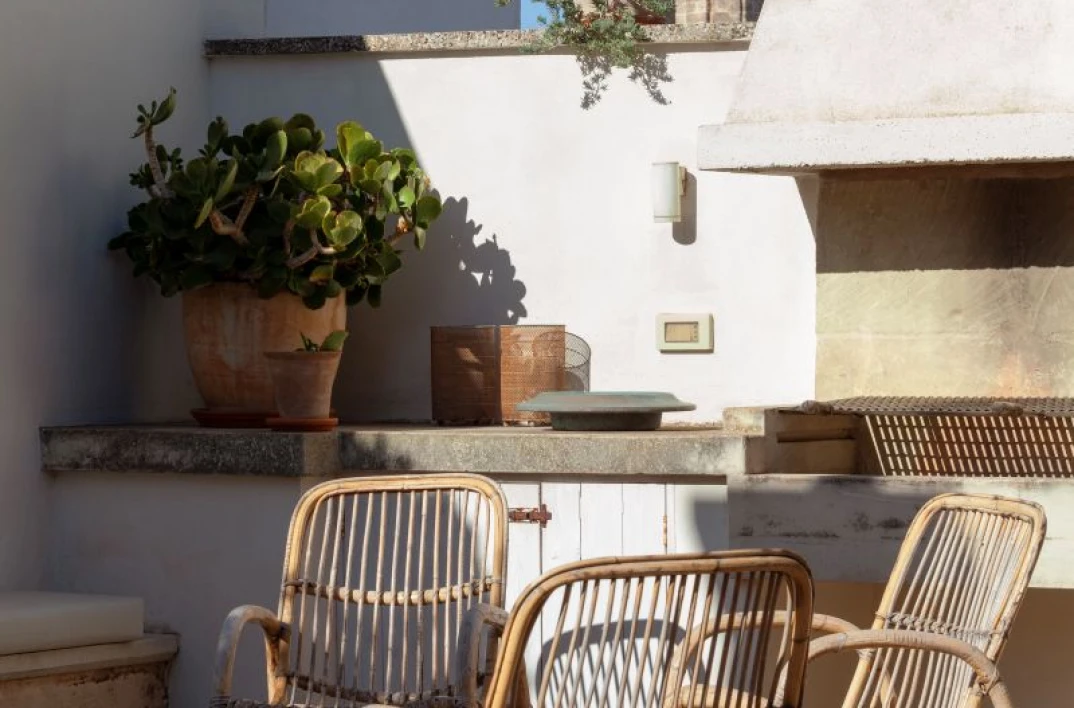 Angel Apartment is a stunning boutique retreat in a restored 17th-century palazzo in Nardó, featuring a spectacular multi-level roof terrace with panoramic town views, an outdoor shower, and a second kitchen.