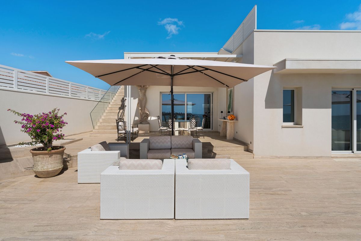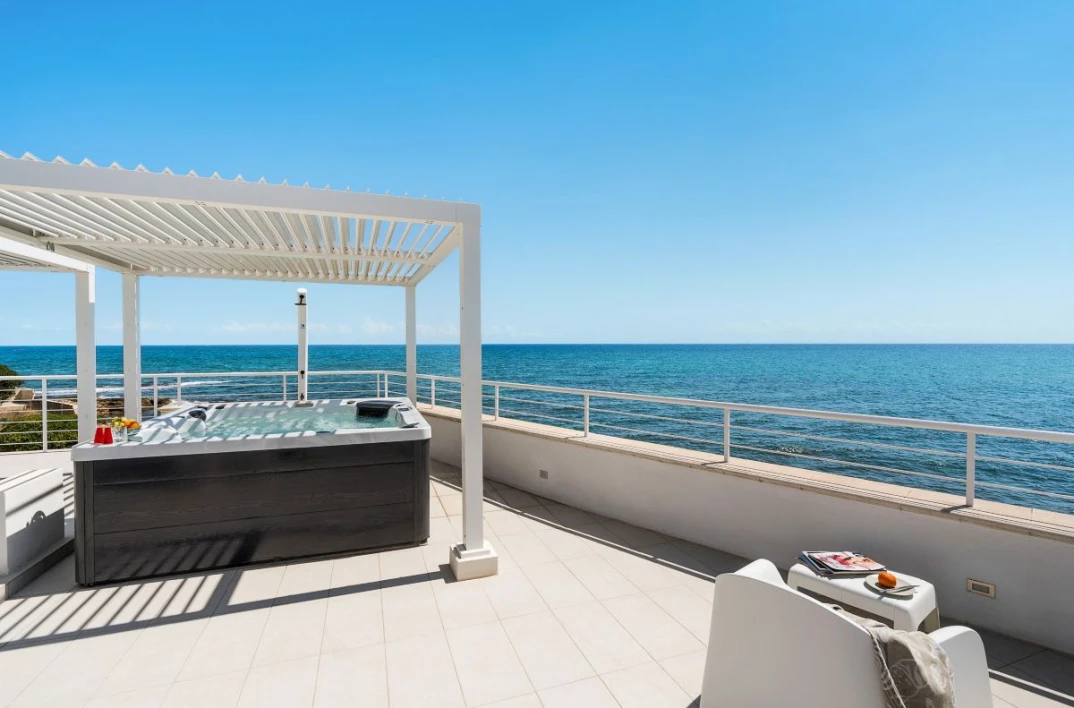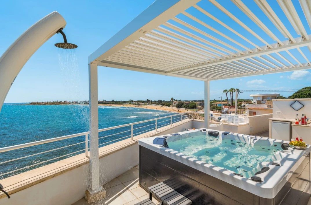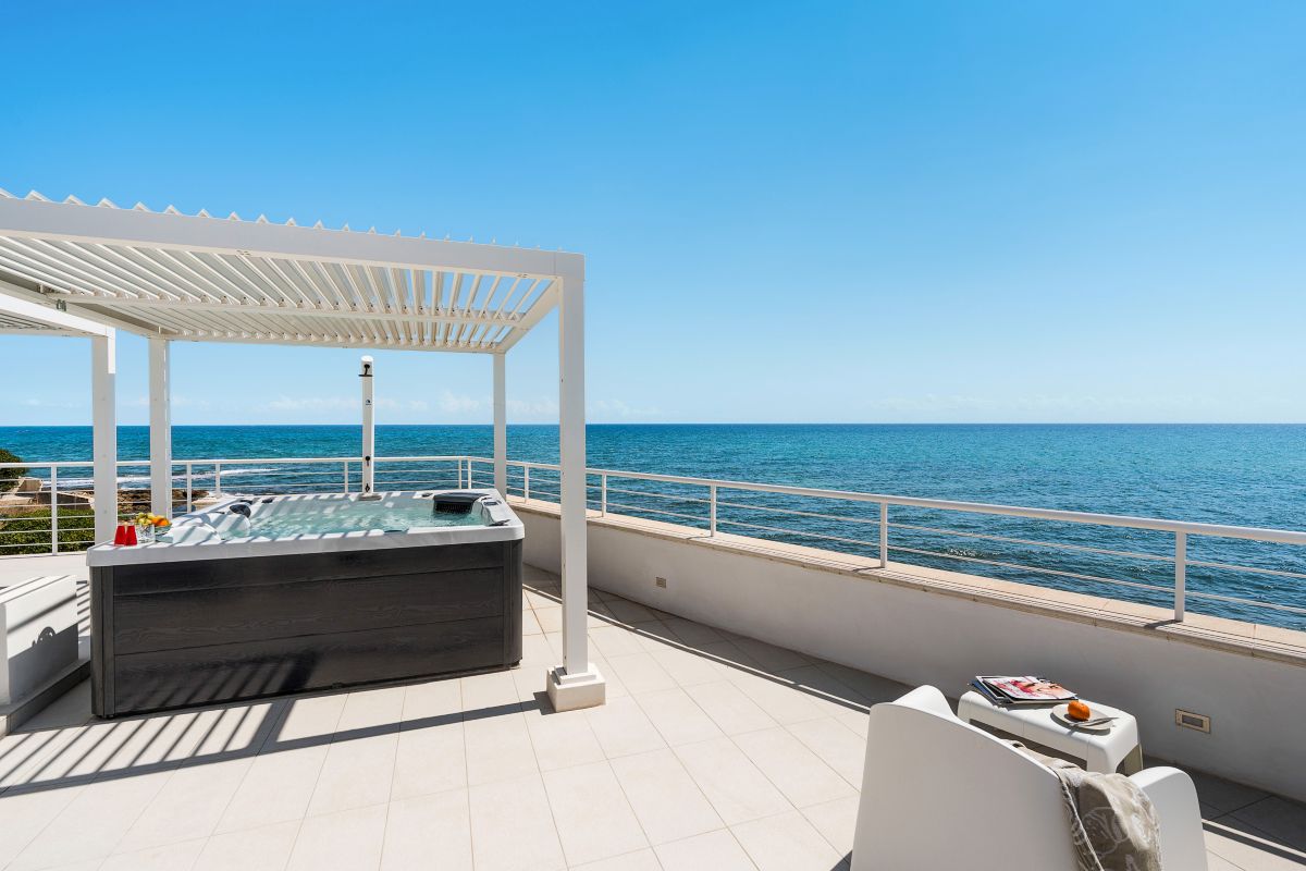 Experience Mare Dentro, a stunning seaside villa close to Avola with panoramic coastal views, modern interiors, and direct access to the sea and just a short walk from the sandy beach of Cicirata.