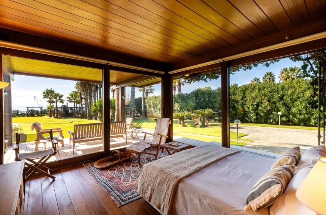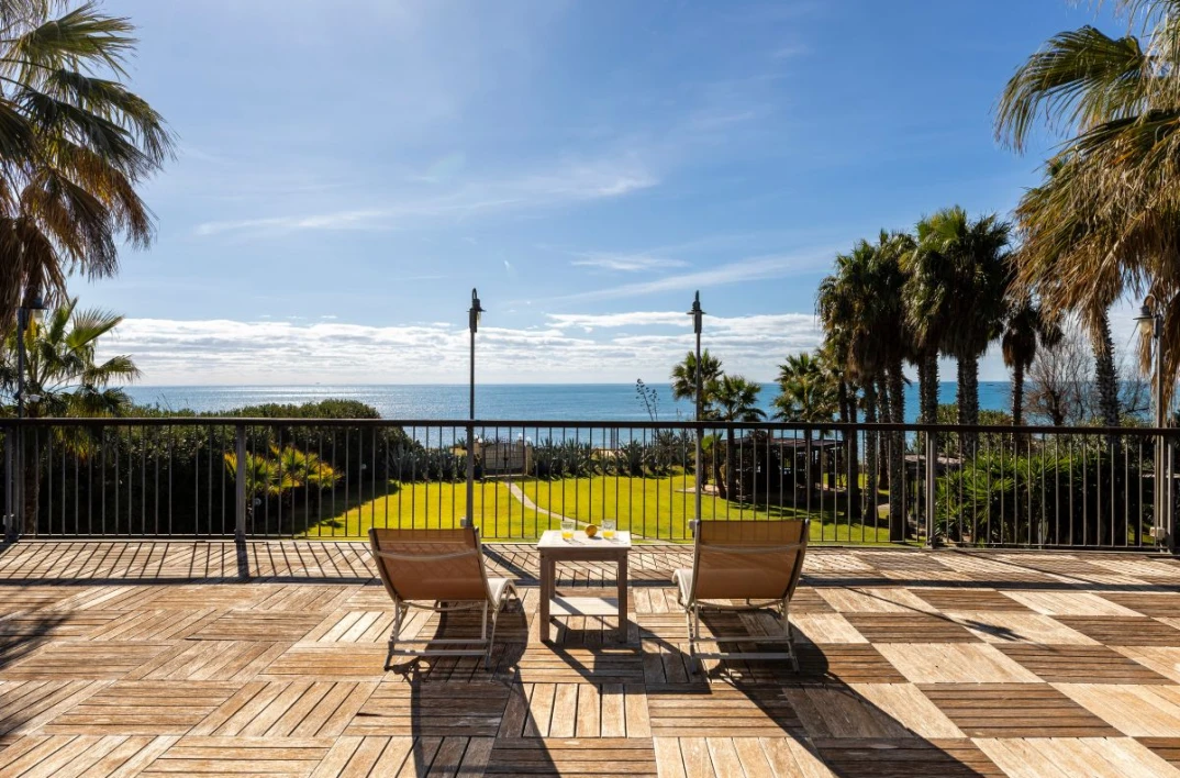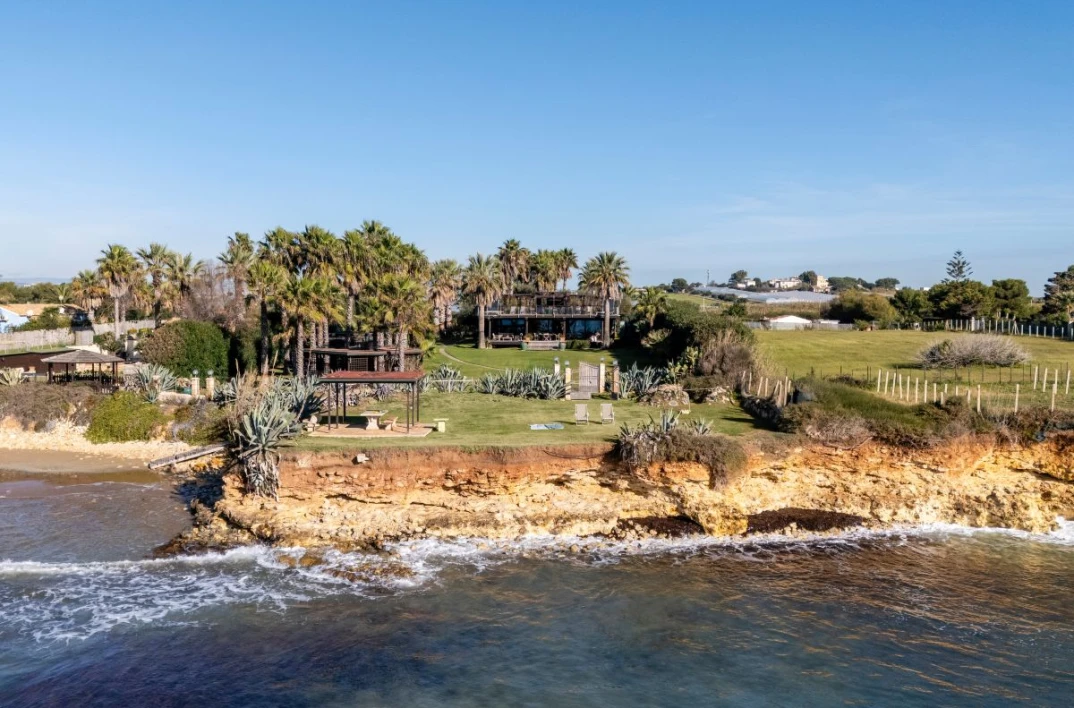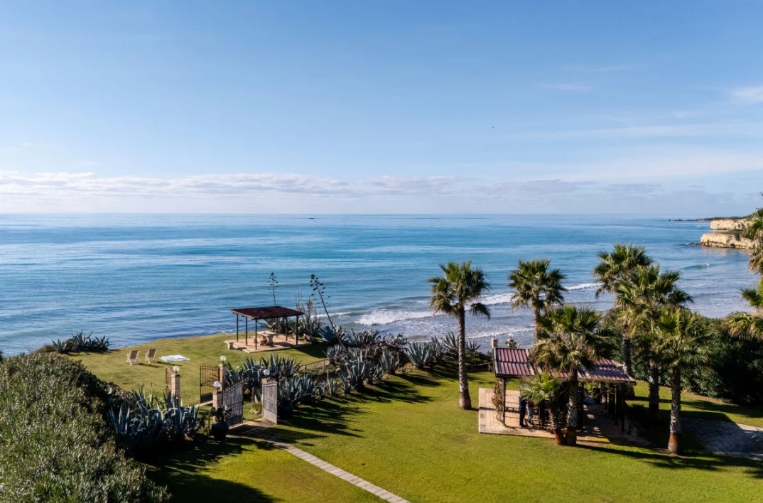 Villa Giorgione is an elegant sea-view villa with direct access to the beach via a small gate. Set in a privileged location, it features a small natural seaside cliff that offers views out over the Mediterranean Sea and the nearby sandy beach of Porto Ulisse.