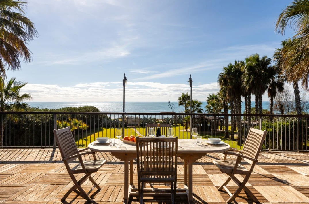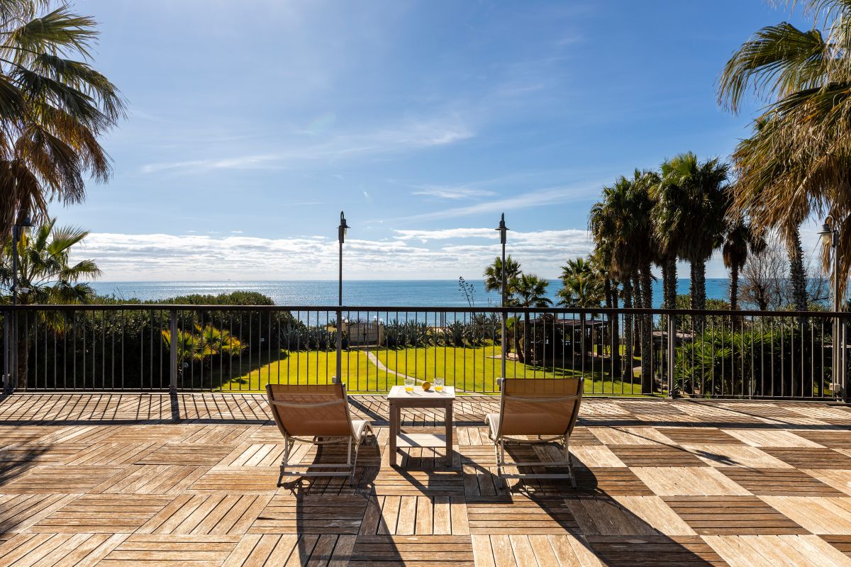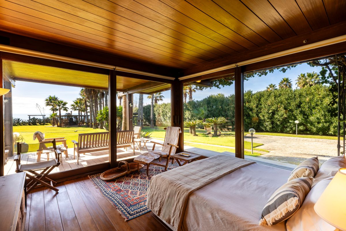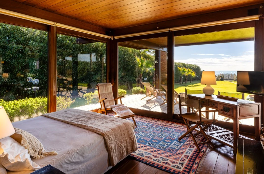 Villa Giorgione is an elegant sea-view villa with direct access to the beach via a small gate. Set in a privileged location, it features a small natural seaside cliff that offers views out over the Mediterranean Sea and the nearby sandy beach of Porto Ulisse.