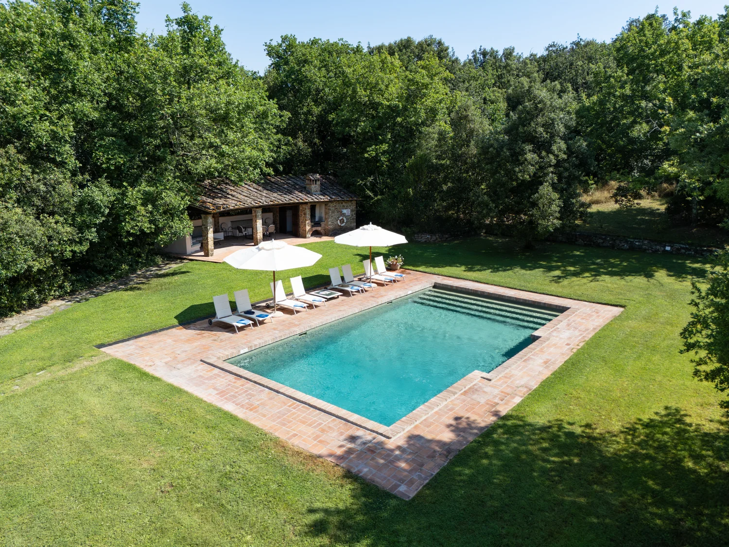 - Private pool 12 x 6m, 1.15–2.35m deep. Heated Pool to 27 degrees